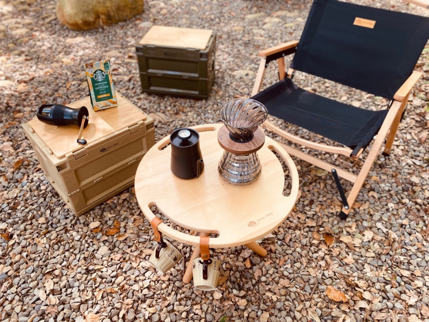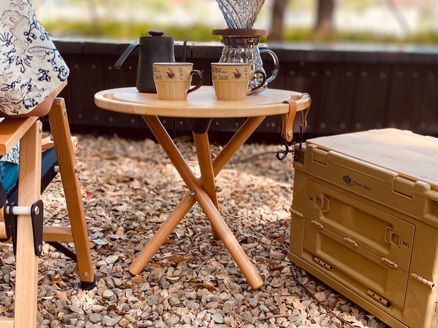 【戶外露營】在戶外露營時,Forest Diary 實木圓桌可以為您擺放美食、書寫遊記、照亮夜晚,為您的露營增添一份舒適與便利。