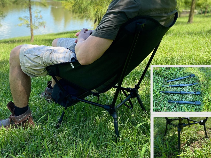 3. 三段式伸縮椅腳:椅子底部設計為三段式可伸縮結構,輕鬆應對斜坡及崎嶇地形,讓您的休息更加自由自在。